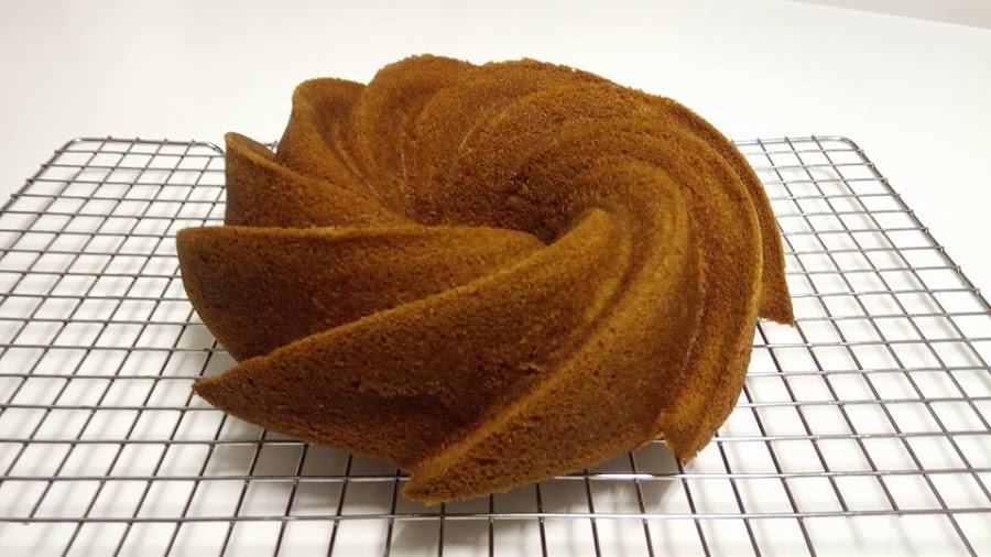Engrasamos el molde (el mio es de Nordic Ware) y horneamos unos 45min. dejamos reposar 10min en el molde antes de desmoldarlo.