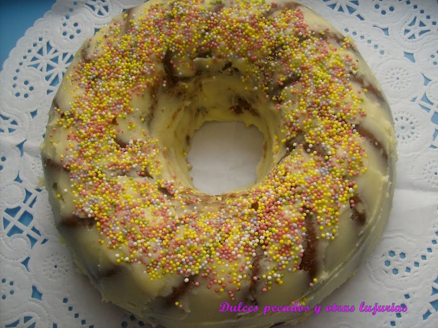 La receta original de este bundt cake es del libro de Bea Roque, "El Rincón de Bea". Si quieres conocer su blog pincha en el título del libro, aunque si estás ya haciendo dieta pre-verano, te aconsejo que no lo hagas porque querrás hacer todas sus recetas jejejejejeje