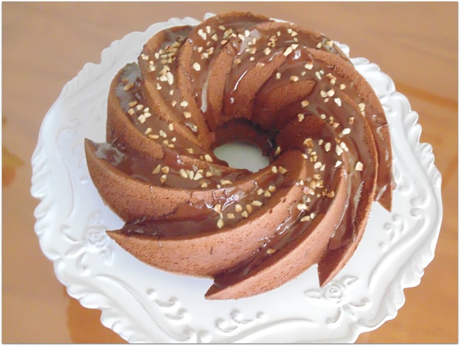 Una vez superados todos estos obstáculos, encendí el horno y os traigo esta receta que para mí es especial porque fue mi pastel de cumpleaños, que celebramos el pasado fin de semana. Es un bundt cake de chocolate con cobertura de chocolate y toque de avellanas. Es aparentemente sencillo, un básico, pero me apetecía compartir con mi familia (después de tanto tiempo) algo que adoro, como es el chocolate y, bueno aquí está el resultado!