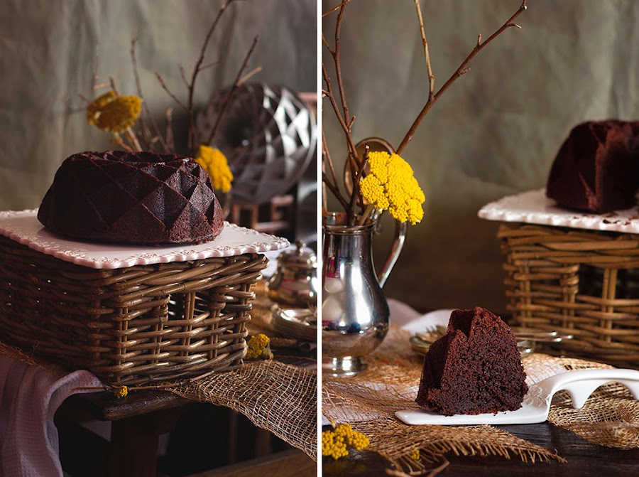 En ésta ocasión me he decantado por éste intenso bundt de chocolate que mis hijos han devorado en un visto y no visto, se trata de un bizcocho húmedo, denso pero no pesado... en fín, cien por cien recomendable.