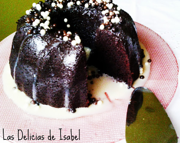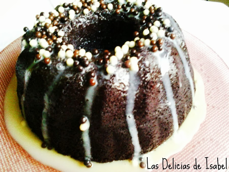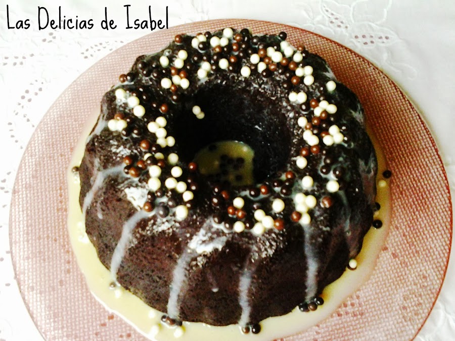 Desmoldar el bundt, verter por encima el ganache y decorar con lo que mas os guste, en mi caso, bolitas de distintos chocolates.