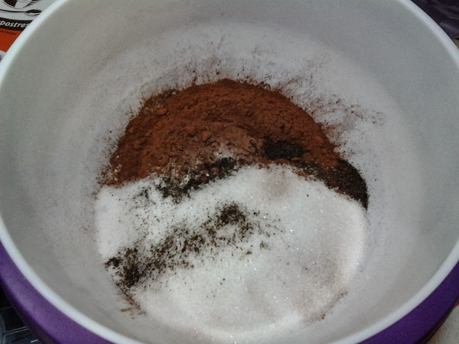 En un bol mezclamos todos los ingredientes secos: harina, azúcar, cacao, levadura, bicarbonato, sal y aroma de vainilla.