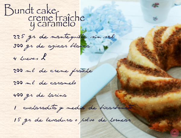 Aqui os traigo de nuevo un delicioso bundt cake con creme fraîche y caramelo , de esos que haces por casualidad y que resultan deliciosos . Tenía que hacer el bizcocho para la merienda y al mirar el frigo me quedé muertita , parecía que había pasado un tsunami y había acabado con todas mis provisiones , estos hijos mios acaban con todo O_0 , pero quedaba un poquito de nata (crema de leche) fresca y de caramelo que había hecho semanas antes y el resultado no pudo ser mejor ..