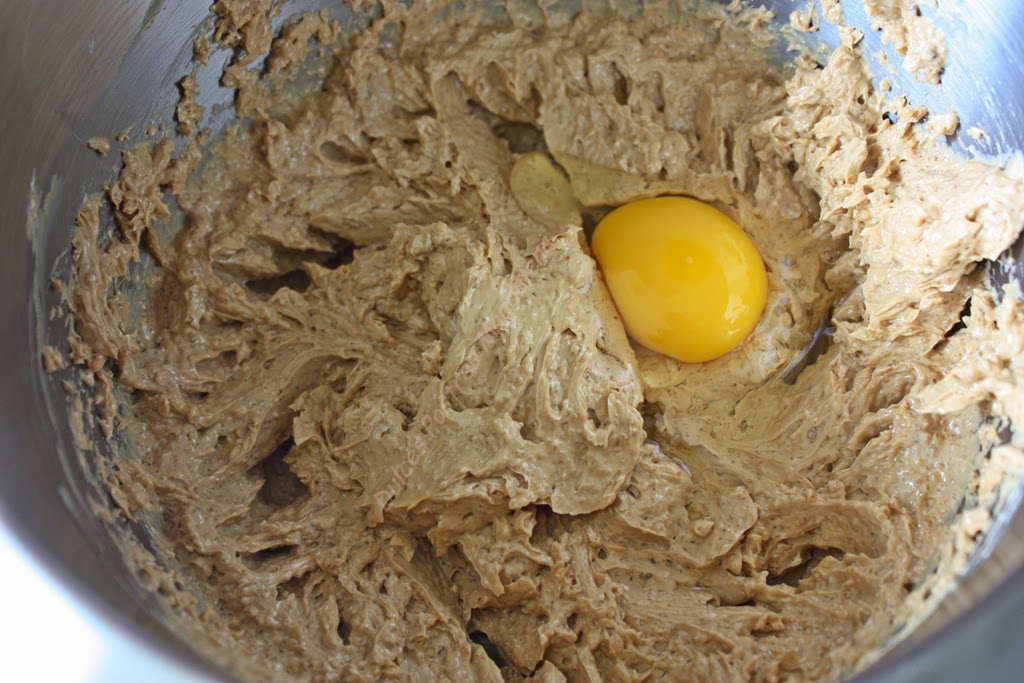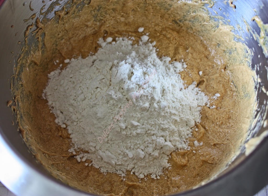 En un bol, batir la mantequilla y el azúcar moreno.