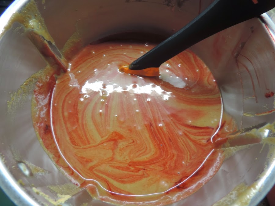 Poner el colorante rojo.
