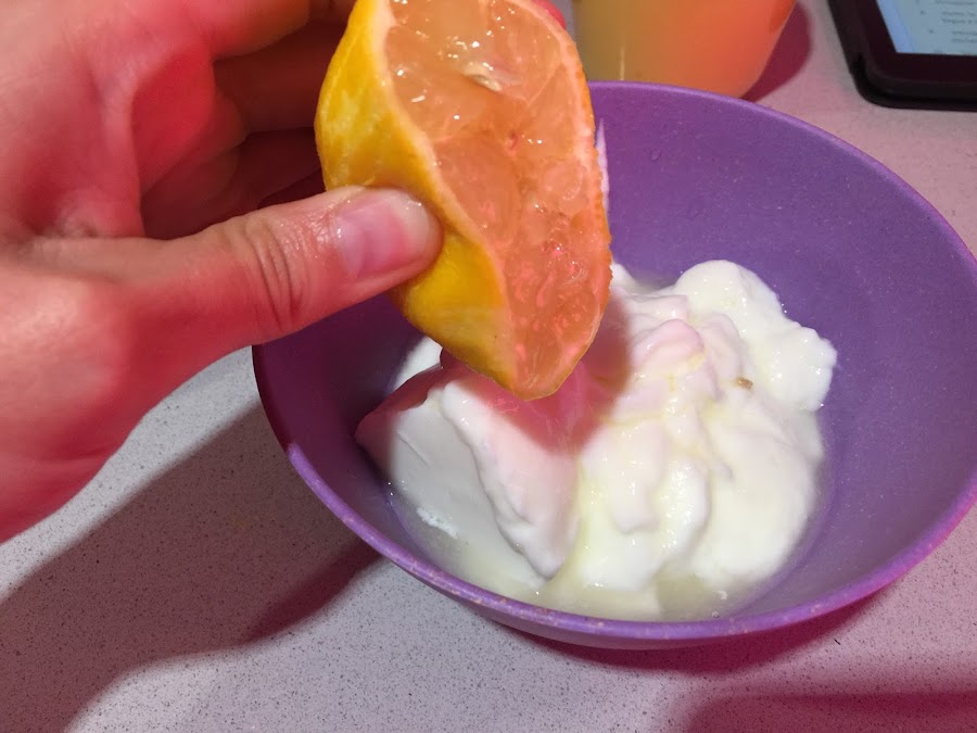 3. Mientras batimos la mantequilla, preparamos la ralladura de limón y la reservamos. También mezclamos el yogur natural junto con el zumo de medio limón y reservamos para más adelante.