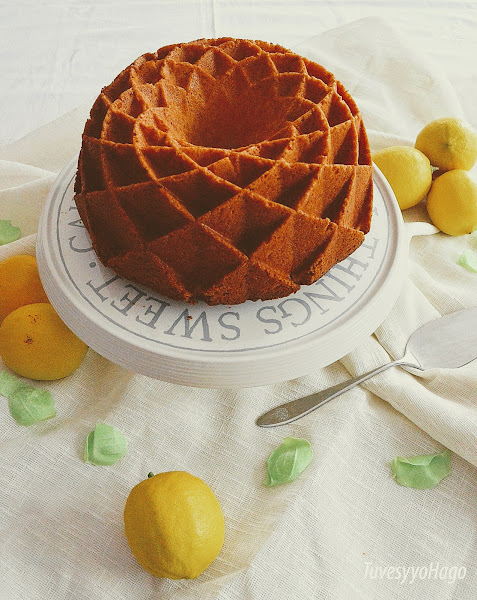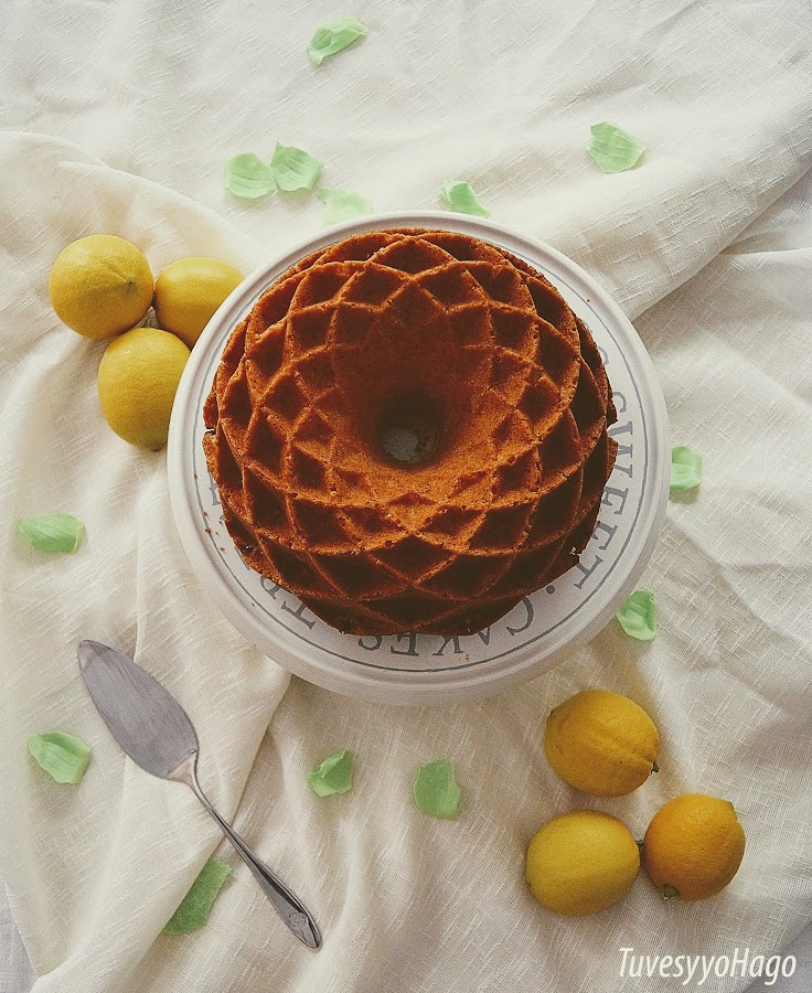 Los ingredientes son para un molde Bundt grande. Tenlo en cuenta porque a lo mejor tienes que reducir a la mitad las cantidades para que no rebose tu molde. O tienes suerte y puedes tener dos bizcochos al precio de uno.