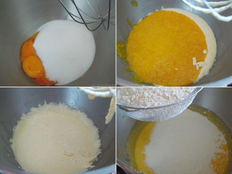 Añade a la mezcla de yemas y azúcar la crema de mandarinas que tenías reservada, mezcla todo junto hasta que quede todo bien integrado.