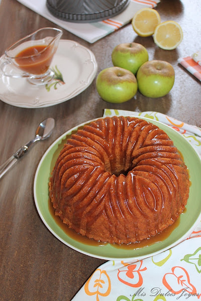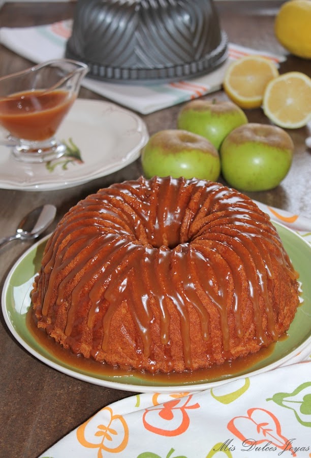 Llevo tiempo sin traeros recetas con manzana y me apetecía prepararos algo con esta fruta. Aparte de la manzana el limón juega un papel importante en esta receta, ya que el bizcocho está aromatizado con ralladura y zumo de limón. La verdad el limón no le quita protagonismo a la manzana, al contrario, estos dos ingredientes combinan a la perfección, y con la salsa de caramelo salado hacen un juego de sabores perfecto y riquísimo. A mí me encanta este Bundt y espero que a vosotros también !!! Os animo a que lo preparéis en casa, y me contéis que os ha parecido !!!!