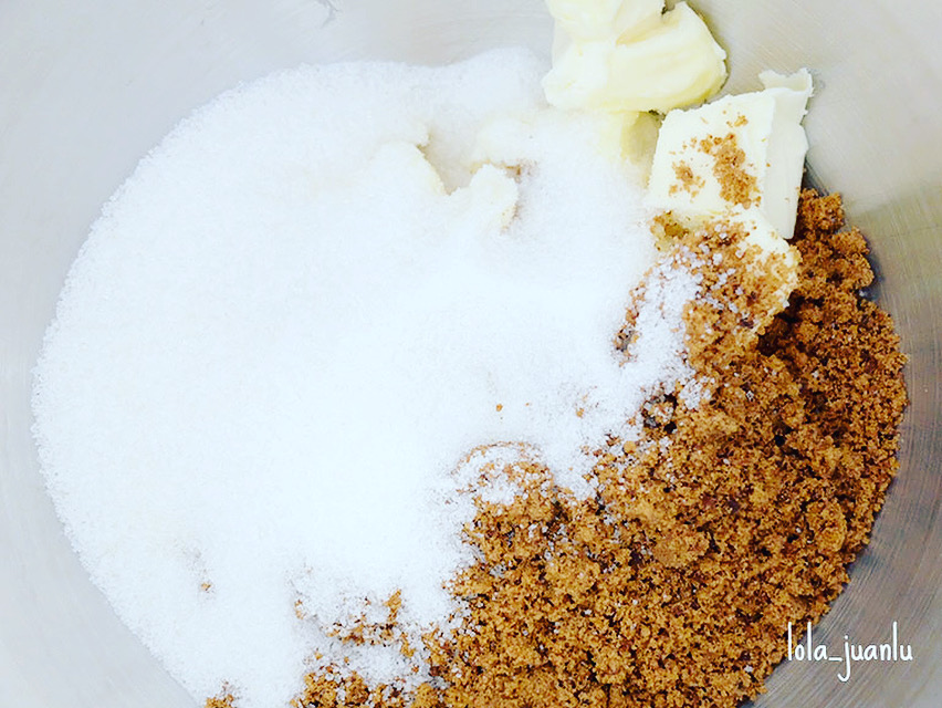 Introducimos la mantequilla, el azúcar y la panela en el vaso o bol de un procesador de alimentos y batimos hasta obtener una mezcla homogénea y cremosa. Con ayuda de una espátula, comprobamos que no queda nada en las paredes del bol y así esté todo bien integrado.