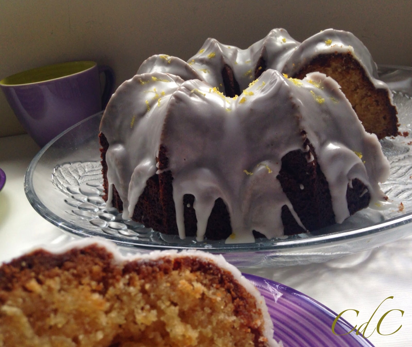 Una vez desmoldado el bizcocho, cubrirlo con el glaseado y dejar secar. Espolvorear con ralladura de limón
