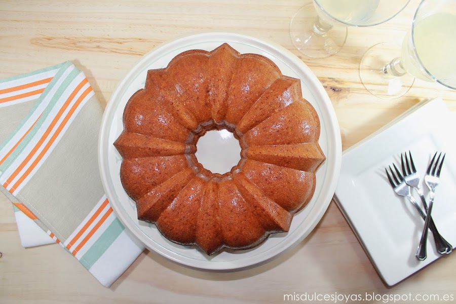 Y os diré, que me ha sorprendido mucho el resultado de este Bundt Cake. Y lo digo porque no es un Bundt solo abizcochado y esponjoso, si no jugoso y muy, muy húmedo, como si lo fuéramos bañado con un almíbar o un sirope. Tiene una textura muy diferente a lo que a Bundt se refiere, o a todos los Bundts Cakes que yo había comido hasta ahora.