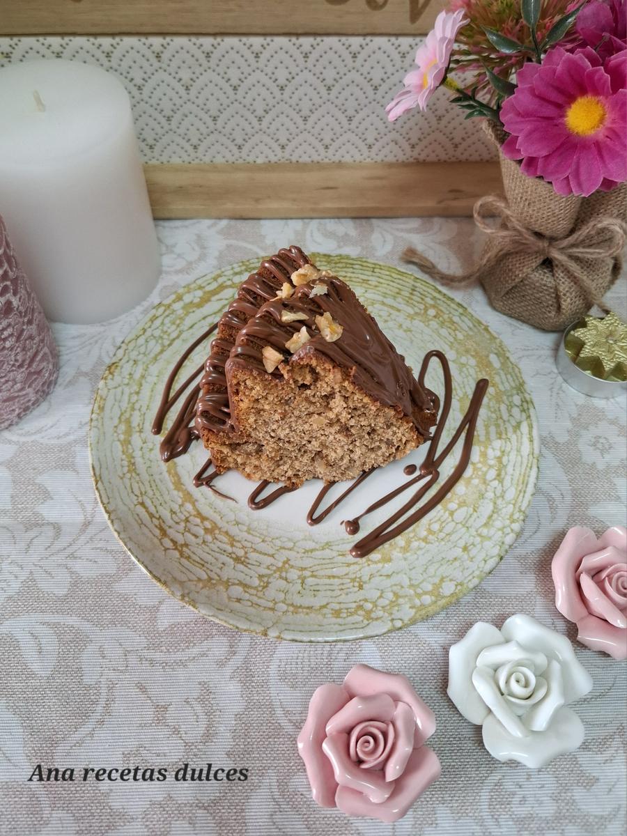 Es un receta muy fácil de hacer, quedando un bizcocho con una miga tierna, esponjosa y jugosa, con un delicioso sabor a plátano y trocitos de nueces que encontrarás en cada bocado, coronado con nutella que lo hace extremadamente rico, se convertirá en vuestro bizcocho favorito.