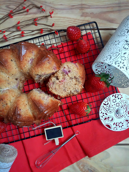 Los trocitos de fresas y nueces le aportan mucho carácter a este bundt.