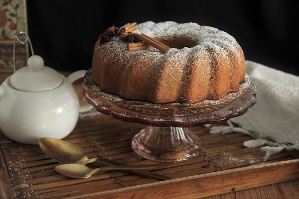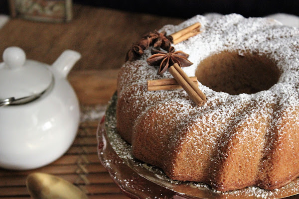 Aromático, esponjoso y muy húmedo, estas son las virtudes de este bundt cake elaborado con té Chai. El té Chai, es originario del sur de la india y muy utilizado en la alimentación ayurveda. Se elabora con una mezcla de té negro aromatizado con cardamomo, anís estrellado, canela, clavo de olor, jengibre y pimienta, como verás una combinación deliciosa con efectos muy beneficiosos para el organismo. Imagina todo este sabor y aroma en un bizcocho, te aseguro que es delicioso.