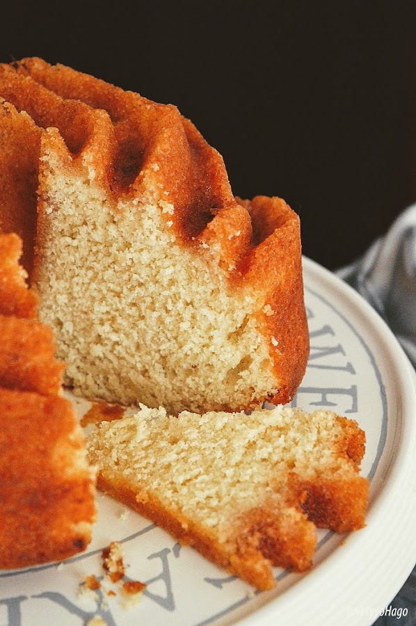 Para preparar este riquísimo BUNDT CAKE DE TORRIJAS DE LECHE, he utilizado como base la receta que me enseñó mi madre para hacer el bizcocho de yogur (el primer bizcocho que hemos preparado todos en casa, con seguridad) y la he tuneado un poco para poder incluir las torrijas.