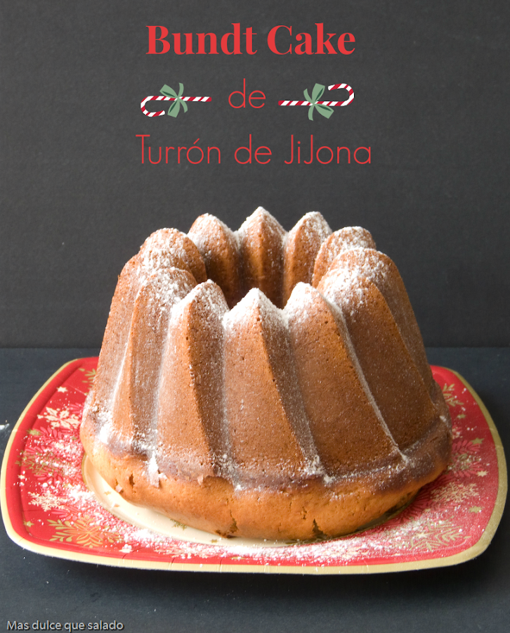 Este año empiezo con un delicioso bundt cake de turrón blando. Es un cake denso pero muy jugoso. No necesita ninguna floritura para decorarlo, simplemente un poquito de azúcar glas y listo.