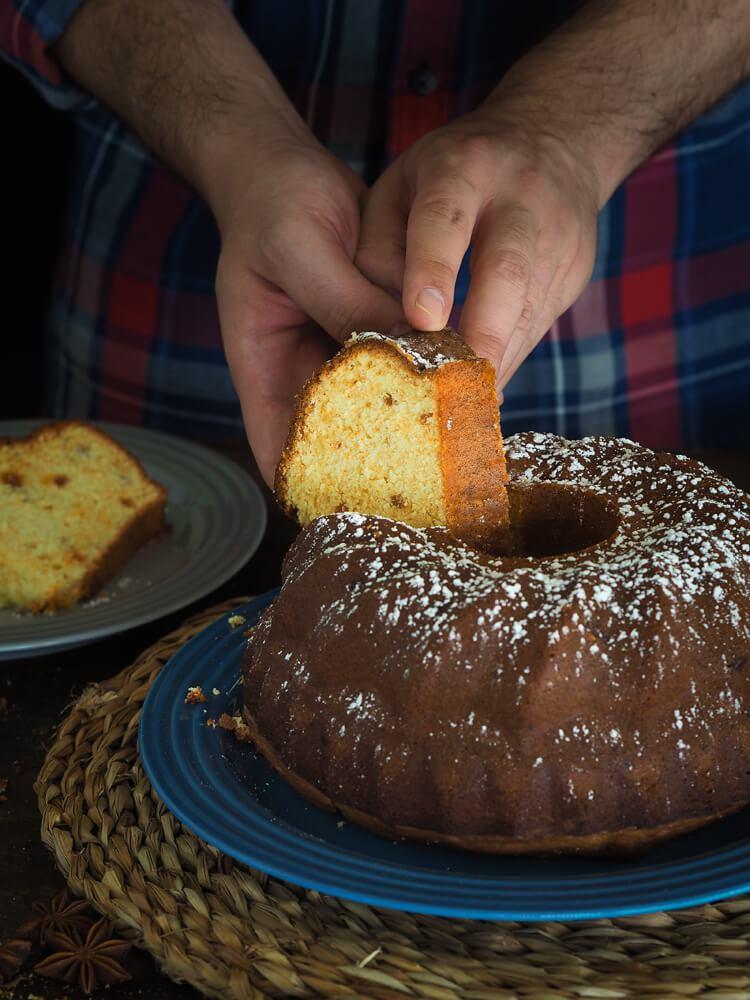 Engrasa un molde de bundt cake con un poco de mantequilla y vierte la masa en él. Hornea durante 40 minutos a 170º, calor arriba y abajo. Los últimos minutos, vigila tu bundt cake. Cada horno es un mundo y nadie mejor que tú sabrás si tienes que restar o sumar algún minuto al tiempo de horneado. Puedes pinchar el bundt cake con un palillo para comprobar si está bien cocido. Si el palillo sale seco, está en su punto. Si sale húmedo, deberás dejarlo unos minutos más.