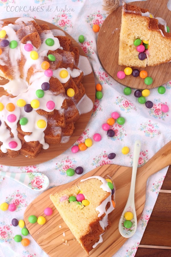 BUNDT CAKE DE VAINILLA Y NATA (crema de leche) CON SKITTLES