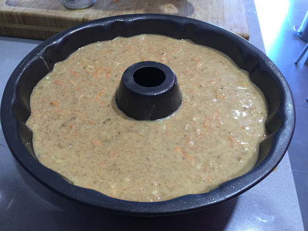 7. Engrasamos el molde y volcamos la masa en él. Horneamos a 170ºC durante 60 minutos aproximadamente.Comprueba con un palillo que el interior esté completamente cocido antes de sacarlo.