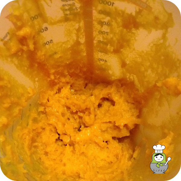 Cuando esté cocida la batimos con ayuda de una batidora de brazo hasta que obtengamos un puré. En este caso nosotras hemos usado la variedad Hokkaido que tiene un sabor buenísimo. También es un poco más seca, lo que nos viene fenomenal para este tipo de recetas.