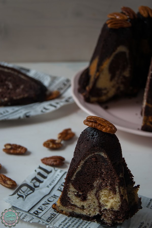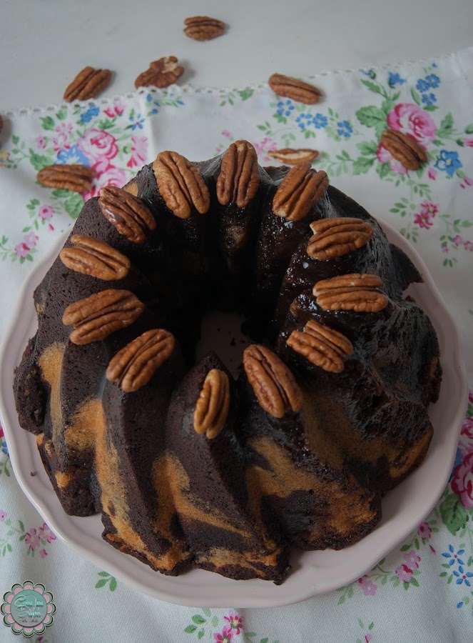 Para reponerme de tanto estrés y tantos disgustos (porque su ropa encoge de largo, pero algo pasa con la mía que encoge a lo ancho) me voy a comer un trozo o dos de este bundt cake que os traigo hoy, receta basada en la de Pemberley Cup & Cakes, mientras investigo cual CSI qué sucede en mi armario para que mi ropa encoja. Id leyendo y, si lo averiguo, seréis los primeros en enteraros...
