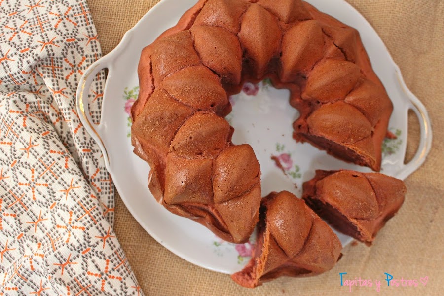 Yo me he traído un Bundt Cake de terciopelo rojo, que es un dulce al que le tenía ganas, desde que hace un par de meses me compré una pasta colorante especial para estos dulces.