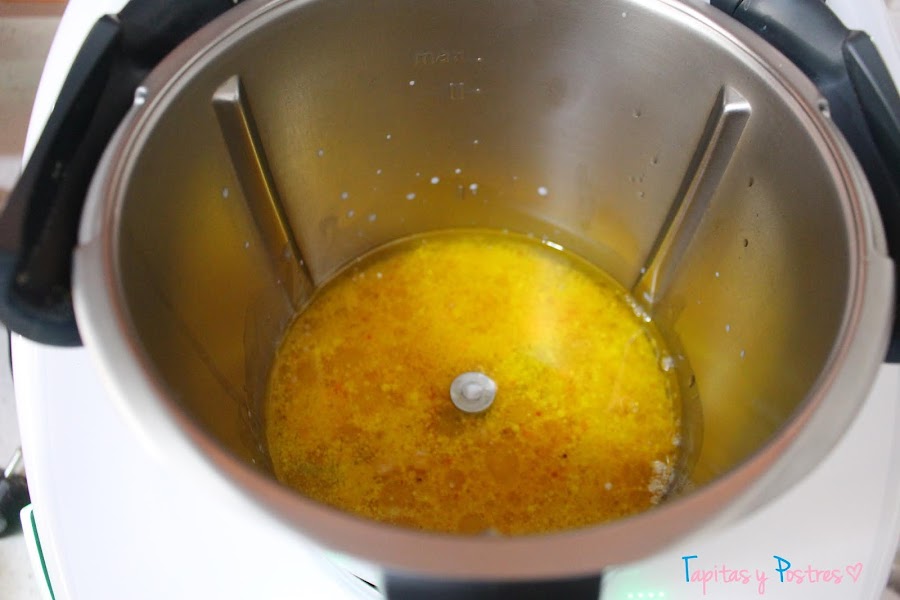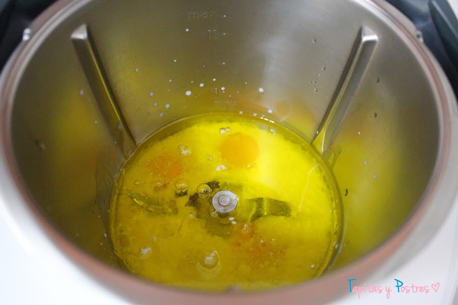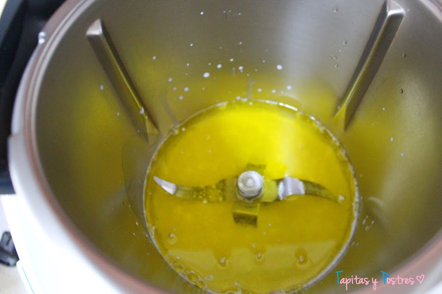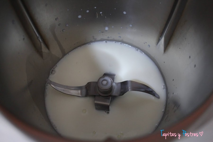 Yo uso la thermomix, pero para esta receta una batidora os sirve igual. Echamos la leche.