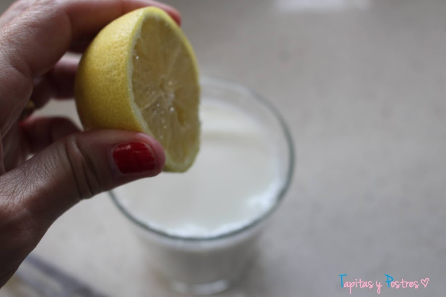 Vamos a echarle a la leche la cucharadita de zumo de limón y removemos.