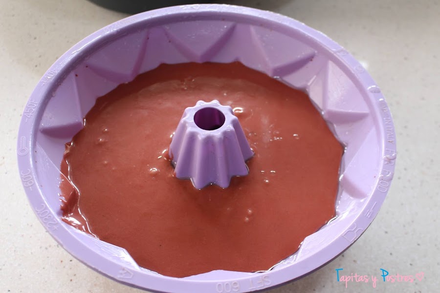 Vertemos la mezcla en el molde de bundt cake y horneamos 50 minutos a 170º. Hacemos la prueba del palillo antes de sacar. Y cuando esté frío desmoldamos.
