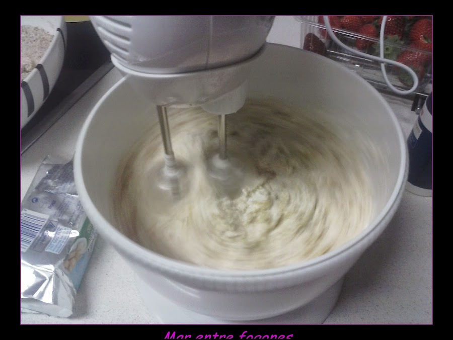 Añadimos un tercio de la mezcla de la harina y batimos.