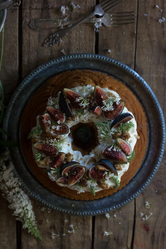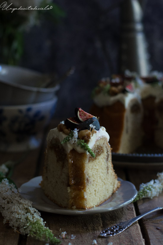 Casi, casi este Bundt de higos con esta decoración sencilla pero muy bonita podría pasar por una tarta, si tienes algún cumpleaños o evento es una buena opción. De hecho se me ocurre que podrías hacer esta receta tipo layer y sería una locura.