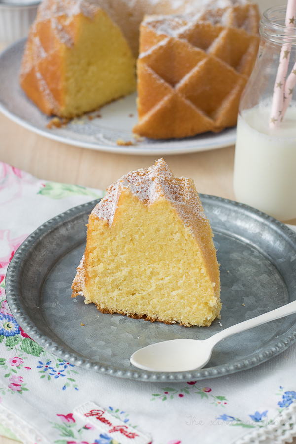 Este bundt es especial por la crema agria, que lo hace especialmente jugoso, mucho más que todos los bizcochos que he preparado con buttermilk.