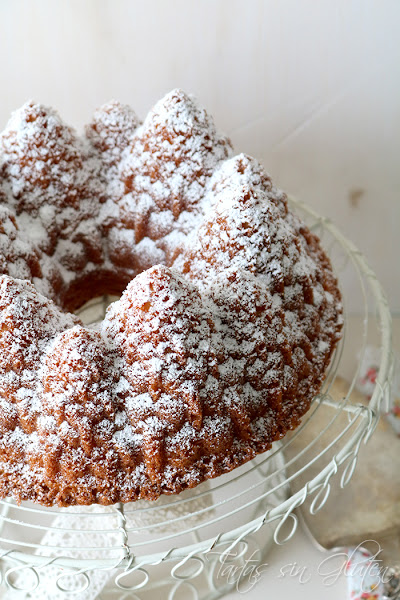 Sacamos el molde del horno y dejamos enfriar sin desmoldar sobre una rejilla durante 10 minutos Pasado los 10 minutitos desmoldamos y dejamos enfriar completamente.