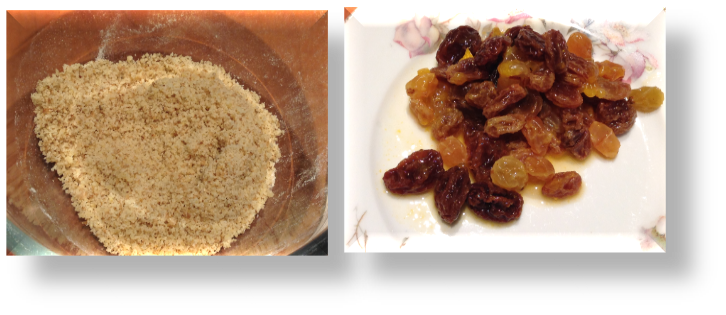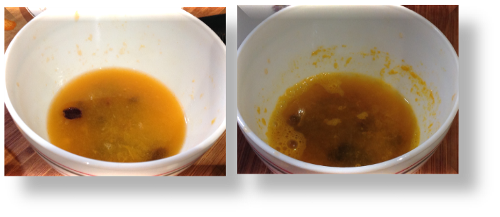 En un vaso o bol, pon a hidratar las pasas con el zumo de mandarina (80 gr.). Lo ideal sería hacer este paso la noche anterior. Si no te has acordado, introduce en el microondas aproximadamente 1 MINUTO A 800 w. ¡Cuidado no te quemes al retirarlo del microondas!. Reserva.