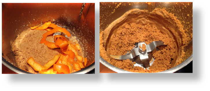 Sin lavar el vaso, añade el azúcar panela e incorpora la piel de las dos mandarinas que habías reservado (5 gr.). Pon la tapa y el cubilete, y cierra el vaso. PROG. / 30 SEG. / VEL. PROG. 5-10.