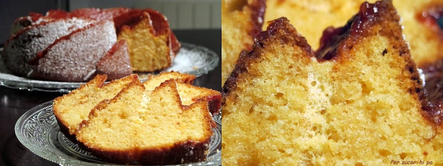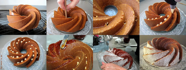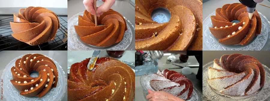 Para el acabado cubrir con mermelada de tomate las caras interiores del bundt y espolvorear con azúcar glass las exteriores.