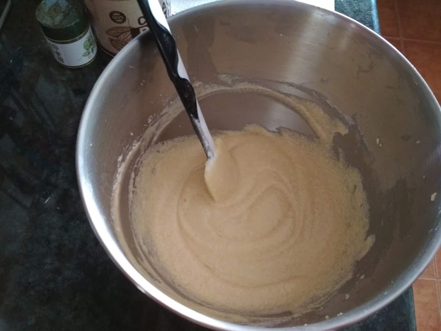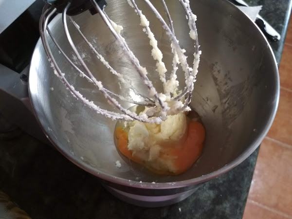 Añadir los huevos 1 a 1 e ir batiendo para incorporarlos.