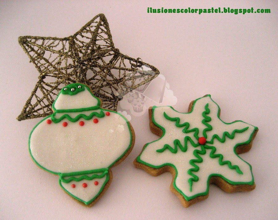Si queréis ver sus maravillas de galletas navideñas hechas con glasa no dejéis de visitar su blog Miri-Sugar, me encanta su trabajo, lo en serio que se lo toma, lo perfeccionista que es y las ganas enormes de aprender que tiene!! Miriam espero que te gusten, se que no son ni la mitad de chulas que las tuyas pero están hechas con muuucho cariño, y nervios!! jajaja