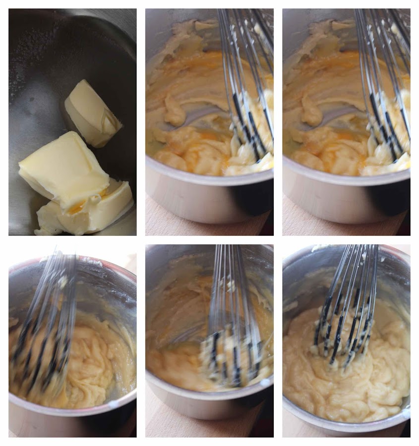 Ponemos el agua, la mantequilla y la sal en un cazo. Calentamos a fuego medio hasta que la mantequilla se funda.