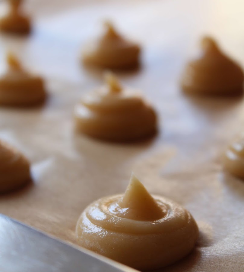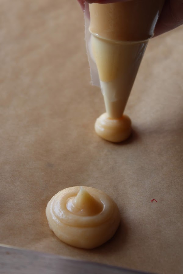 Con la manga pastelera vamos haciendo los petit choux en la bandeja del horno.