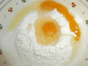 Paso 1. Preparamos una pasta con la harina, los huevos y un poco de sal. Removemos hasta que no tenga grumos.