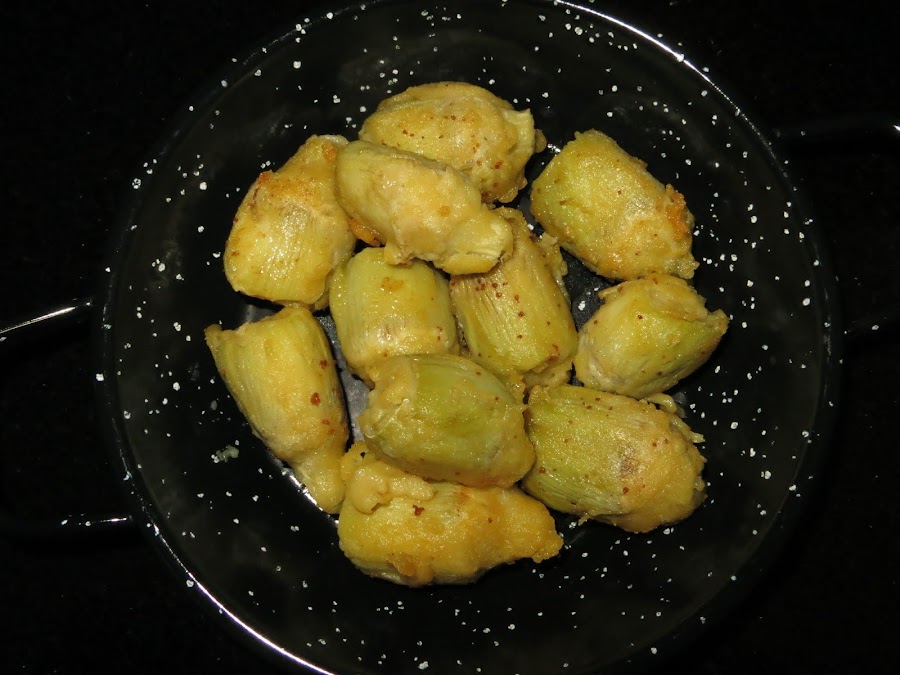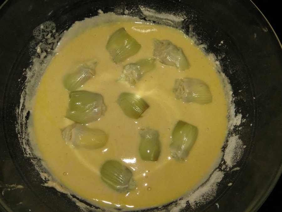 Ponemos aceite de oliva en una sartén y calentamos, colocamos las alcachofas en la masa y cuando estén bien cubiertas, escurrimos y las vamos echando en tandas en la sartén. Les damos varias vueltas para que se frían por todos los lados y las sacamos a escurrir a un papel absorbente y ya están listas para servir.