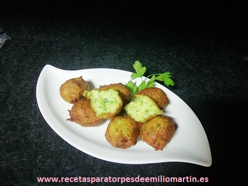 Cuando hayan pasado los 30, ponemos un recipiente al fuego, temperatura medio/alta (al 6 sobre 9), con aceite, con dos cucharas vamos formando los buñuelos y cuando el aceite esté caliente, les vamos friendo por todos los lados hasta que estén dorados, una vez dorados , sacamos a papel de cocina para que escurra el aceite sobrante. Servimos