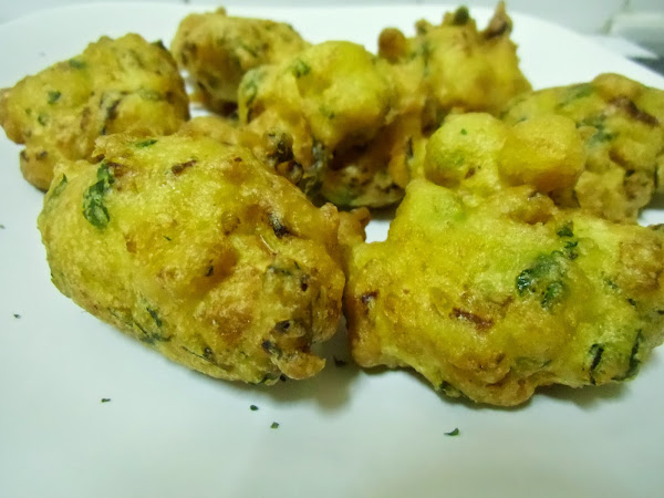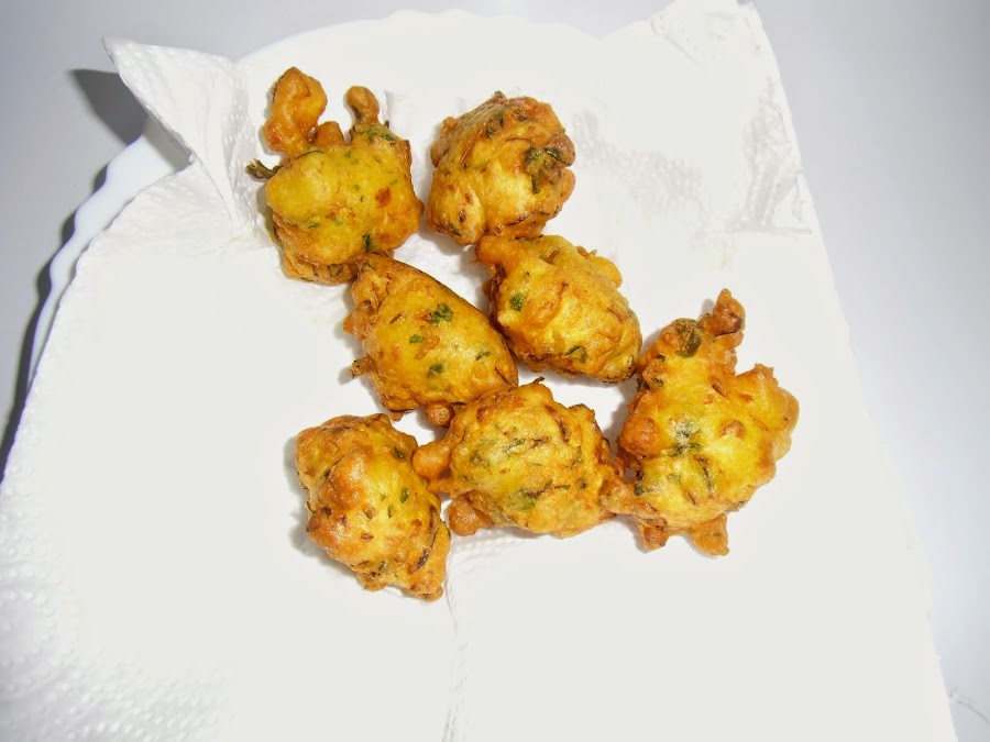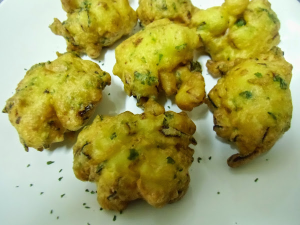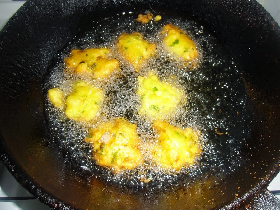Las freímos echando cucharadas de la masa en abundante aceite caliente.
