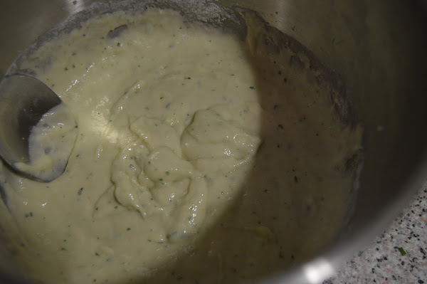 Una vez mezclados los ingredientes echamos el huevo, la levadura, el ajo y la harina y mezclamos hasta obtener una masa homogénea.