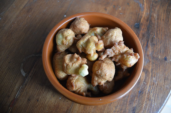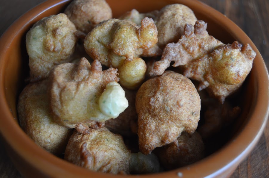 Ponemos a calentar abundante aceite en un cazo, cuando este muy caliente vamos haciendo bolitas con dos cucharas y las introducimos en el cazo, se darán la vuelta solas, pasados 3 o 4 minutos o cuando veamos que están doraditas las sacamos y las secamos el exceso de aceite con papel absorbente.
