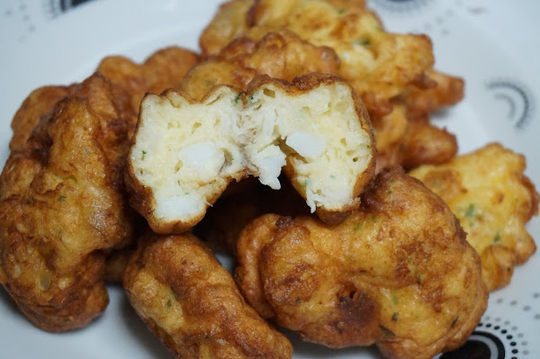 Nota: Hacer un par primero y probarlos de sal, si el bacalao está muy desalado le hará falta un poco de sal a la masa.