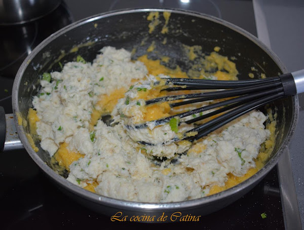 Para hacer los buñuelos, mezclamos las dos preparaciones anteriores, la masa choux y la brandada de bacalao, y formaremos una masa compacta pero fluida.