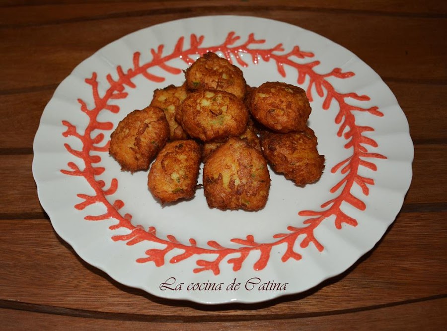 Cuando tengamos el aceite caliente, cogemos porciones con una cuchara y las vamos friendo hasta que veamos dorados los buñuelos. Los vamos sacando sobre papel absorbente para que dejen el exceso de aceite.